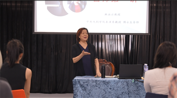 麻書云教授用她自己的經歷講述她眼中的表演:表演作為一門綜合性很強的學科,是“聲樂”“臺詞”“形體”“表演”等基礎訓練的綜合呈現,每一環節都需要嚴謹完成,最終塑造出一個 叫做“角色”的合格“產品”。麻書云老師表示,演員對文本的熟悉程度、對對手戲演員臺詞的熟悉程度,會影響到演員對劇目的整體把控性;而”形體“課的一以貫之,則能夠幫助演員在實踐過程中,用形體塑造人物,很好地靠近角色。麻老師表示,醇熟的”演技“一定是建立在 日復一日的練習中,需要不斷反復練習才能掌握才能達到能夠在舞臺上、劇組中呈現出足夠的專業性。課后學生表示受益匪淺。