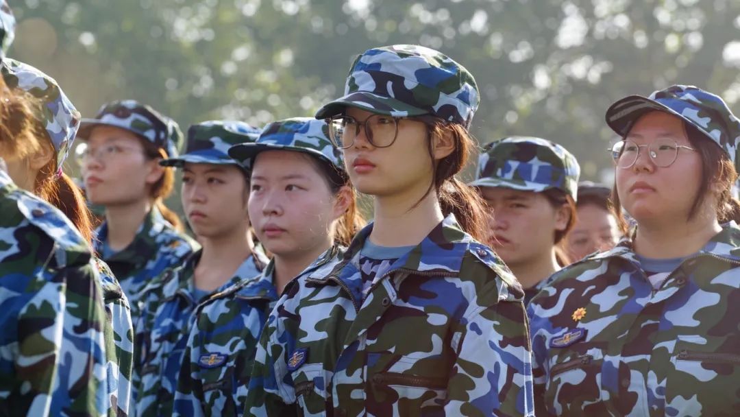 陽光下,同學們的發絲仿佛被施加了魔法,閃爍著點點金光。這一刻,大家帶著陽光的溫度與力量,在軍訓場上揮灑汗水,展現青春的風采。