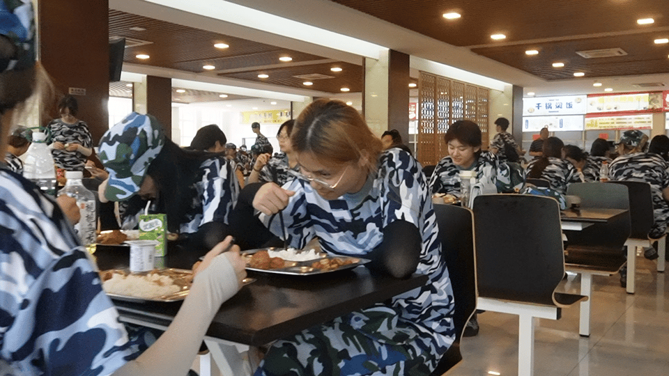 日影暫歇,隨著上午的訓練結束,整齊的方隊在食堂門口解散。同學們在食堂享受午餐。結束后,大家紛紛回到宿舍,在這個短暫的休息時光里,他們或是輕聲交談,或是簡單地小憩,為下午的訓練養精蓄銳。