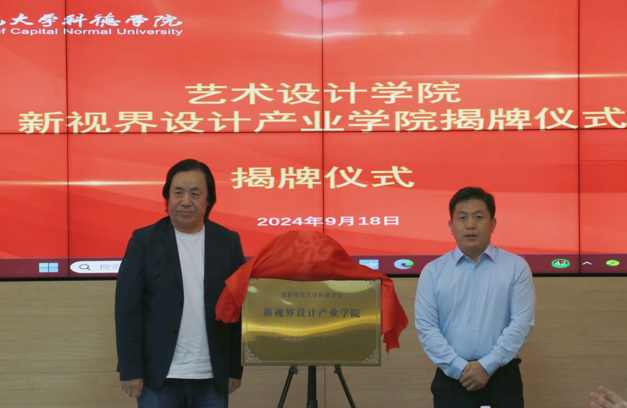 2024年9月18日,新視界設計產業學院在首都師范大學科德學院正式揭牌??频聦W院校長王萬良表示,新視界設計產業學院的建立,順應設計產業的發展趨勢,深化產教融合,推動設計教育創新,,為社會培養更多高素質的藝術設計人才。