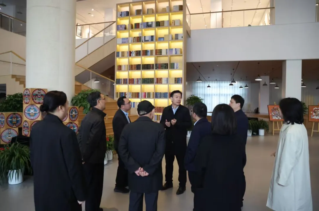 調研組一行在學校領導班子的陪同下,先后參觀了學校圖書館、劇場、體育館、教學樓、藝術設計學院展廳、學生食堂、學生宿舍、實訓樓等,親身感受著校園的環境和氛圍,了解了關于產教融合模式突出特點、教育教學等方面的介紹。
