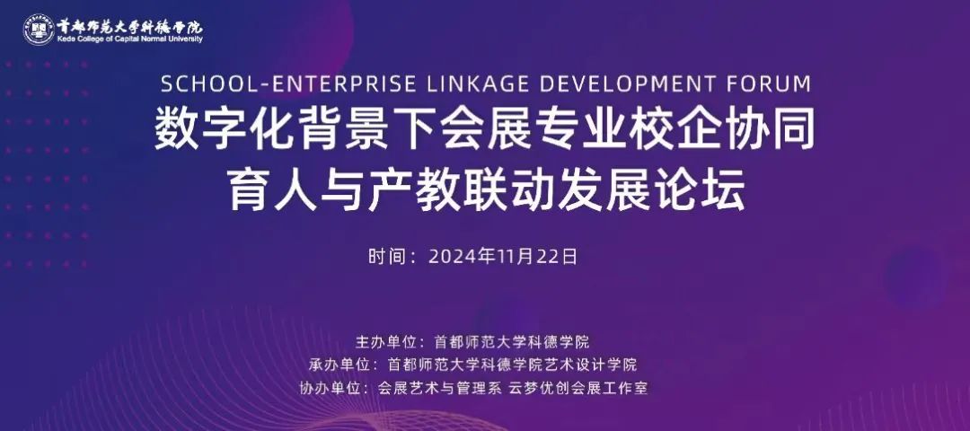 2024年11月22日上午,由首都師范大學科德學院主辦,藝術設計學院承辦,會展藝術與管理系和云夢優創會展工作室協辦的“數字化背景下會展專業校企協同育人與產教聯動發展論壇”在實訓樓一層報告廳舉行。首都師范大學科德學院副校長周瑛教授,藝術設計學院院長彭華競教授,學生就業指導中心主任劉克光、老師邱建勛,藝術設計學院舒鵬、趙馨、劉麗華等多位老師出席了本次論壇。