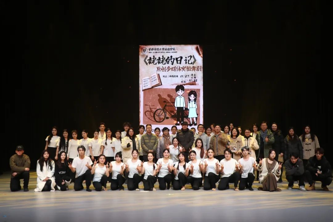 《姥姥的日記》是傳媒學院21級表演3班精心創作的原創多媒體實驗舞劇,系統整合了他們在表演、舞蹈、多媒體運用等多方面的所學技能與感悟,成為他們大學專業學習歷程中一份極具代表性與綜合性的成果展示。此劇歷經反復打磨與精心雕琢,無論是舞臺布局的精巧設計、燈光音效的完美配合,還是演員們的精湛演繹、服飾道具的精致搭配,都達到了專業領域的較高水準,充分彰顯出獨特的藝術魅力與風采。演員們憑借扎實深厚的表演功底,生動且精準地塑造出一個個鮮活靈動的角色,借助輕盈靈動的舞姿,細膩入微、絲絲入扣地傳遞出人物豐富的情感世界,使得觀眾不由自主地沉浸于劇情之中,與劇中人物同呼吸、共悲歡,深深地陶醉其間。