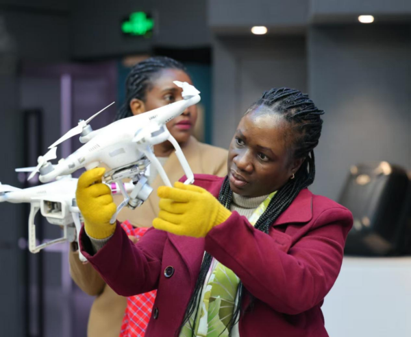 在實(shí)驗(yàn)實(shí)訓(xùn)中心,無(wú)人機(jī)教室飛行器模型、Sony 數(shù)字媒體教室影視制作設(shè)備及廣播直播室專業(yè)播音導(dǎo)播設(shè)備充分展現(xiàn)實(shí)踐教學(xué)深度與資源根基,聯(lián)合國(guó)人口基金駐肯尼亞代表及優(yōu)秀青年親身體驗(yàn)設(shè)備。在體育館,雙方同場(chǎng)競(jìng)技乒乓球、籃球、羽毛球等項(xiàng)目,揮灑汗水并在籃球上簽名留念。