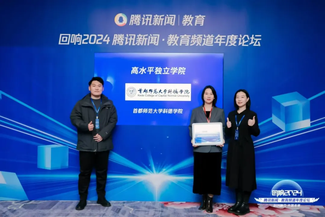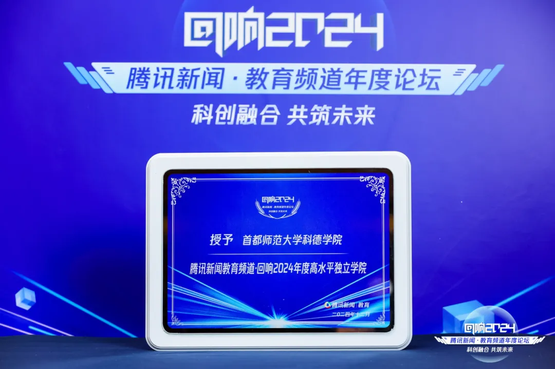 12月5日,以“科技賦能,創(chuàng)新未來”為主題的騰訊新聞·教育頻道年度論壇在京舉行。首都師范大學(xué)科德學(xué)院榮膺“2024年度高水平獨(dú)立學(xué)院”榮譽(yù)稱號(hào)。