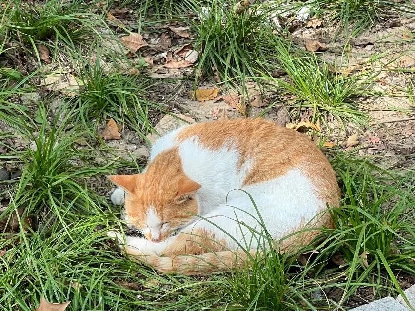 校園角落的“學長學姐”們曬著太陽