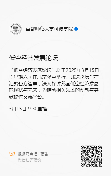 在國家政策大力扶持與技術創新的雙重驅動下,低空經濟作為戰略性新興產業,正以蓬勃之勢改寫經濟發展格局,成為培育新質生產力、推動高質量發展的重要引擎。2025年3月15日,一場匯聚學界與業界深度融合的盛會——2025低空經濟發展論壇將在北京開啟,誠邀各界共赴這場思想盛宴,探尋低空經濟發展新路徑。