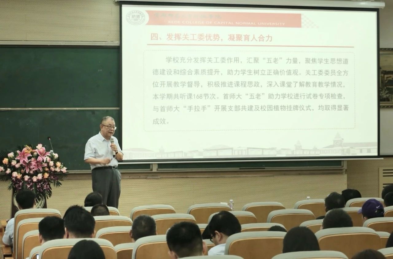 近日,首都師范大學科德學院召開2024-2025學年第二學期第2次全體教職工大會。校長王萬良,黨委書記兼常務副校長徐振劍,黨委副書記、副校長陳永俠,副校長周瑛,校長助理趙飛及全體教職工參加,共同回顧本學期成果,部署假期重點工作,為新學期蓄力啟航。大會由黨委書記兼常務副校長徐振劍主持。