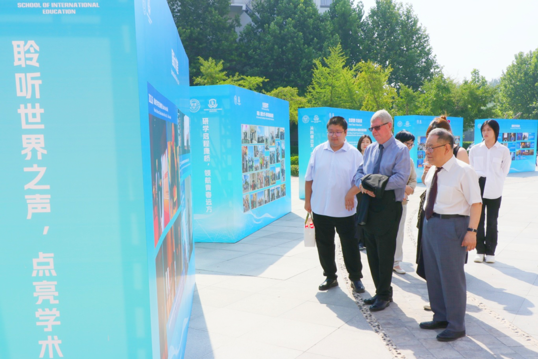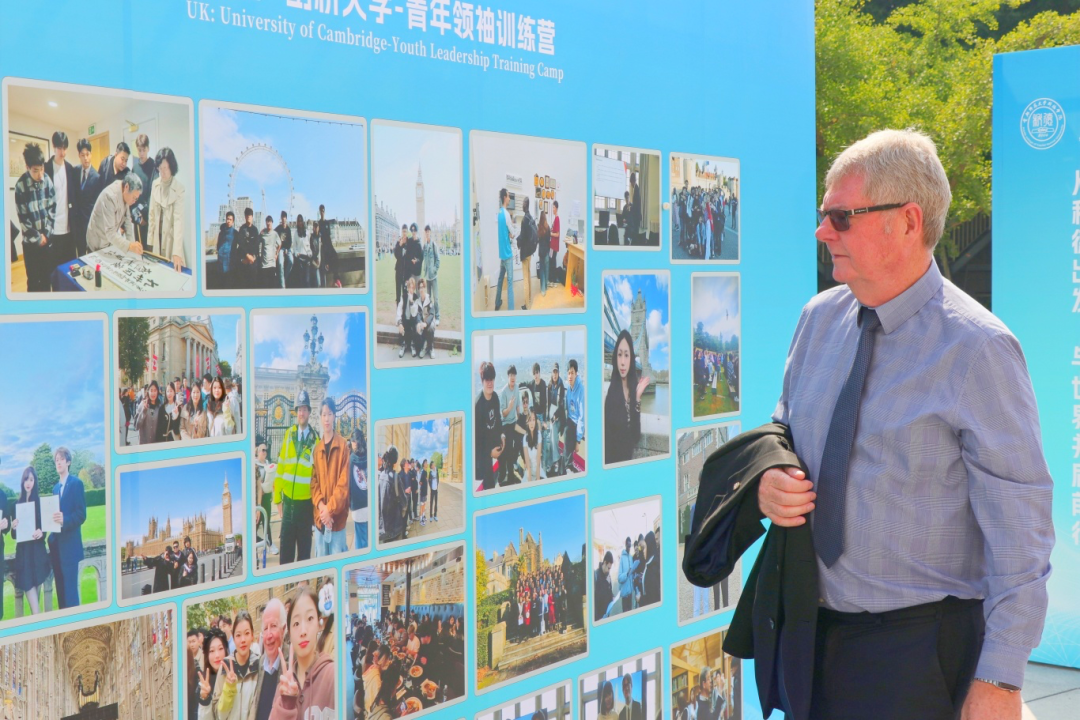 我校領導及部分師生陪同劍橋大學原副校長大衛·卡德韋爾教授參觀了科德校園,他在我校國際教育成果展區駐足,王萬良校長向卡德韋爾教授介紹了我校在國際化教育領域的廣泛活動。這些活動包括海外升碩成果以及多樣化的國際交流和國內外實習實踐的精彩時刻,生動地呈現了我校在推進教育國際化方面的不懈努力和取得的成就。