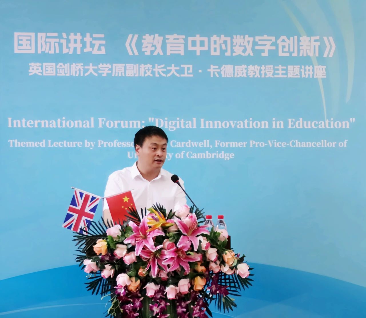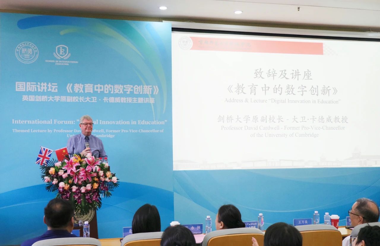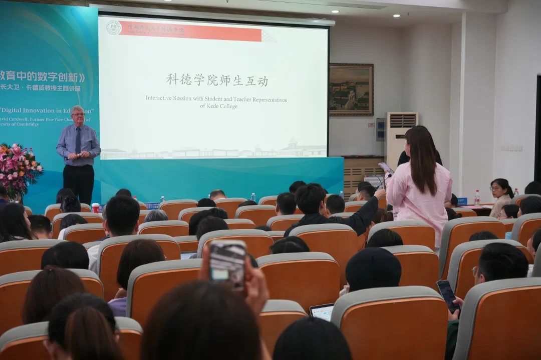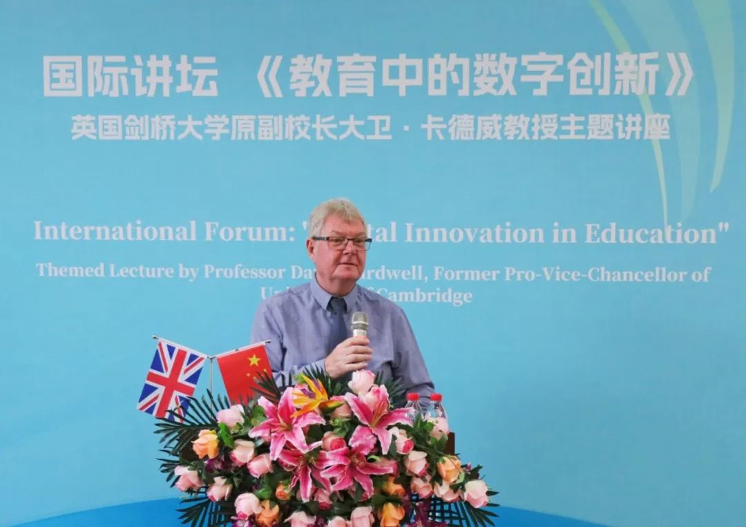 緊接著,劍橋大學原副校長大衛·卡德韋爾教授,對科德學院的熱烈歡迎表達了深深的謝意,并且為科德學院的師生們帶來了一場主題為“教育中的數字創新”的精彩主題講座。在這場講座中,大衛·卡德韋爾教授深入地闡述了數字時代如何從根本上重塑了高等教育的面貌。他從多個角度出發,詳細地講解了課程創新、研究模式的轉變、大學使命的改變以及劍橋大學在數字創新方面的實踐和成就。他強調了在全球化鏈接的世界中,大學如何通過這些變革性的變換來引領時代的潮流,以及如何在這一過程中保持其教育和研究的卓越性。