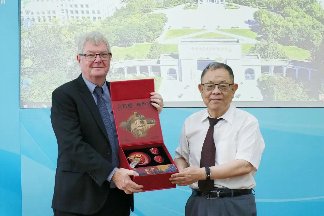 卡德韋爾教授也在交流中分享了劍橋大學的經驗,與王校長共探高校在全球責任共建中的新角色以及中英高校在教育理念與育人實踐方面有哪些差異與互補。
