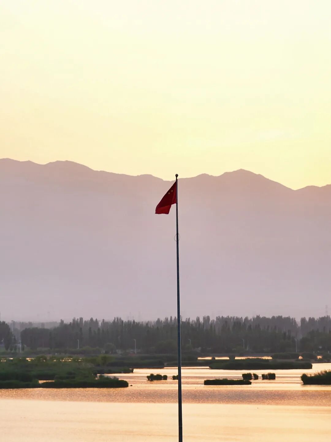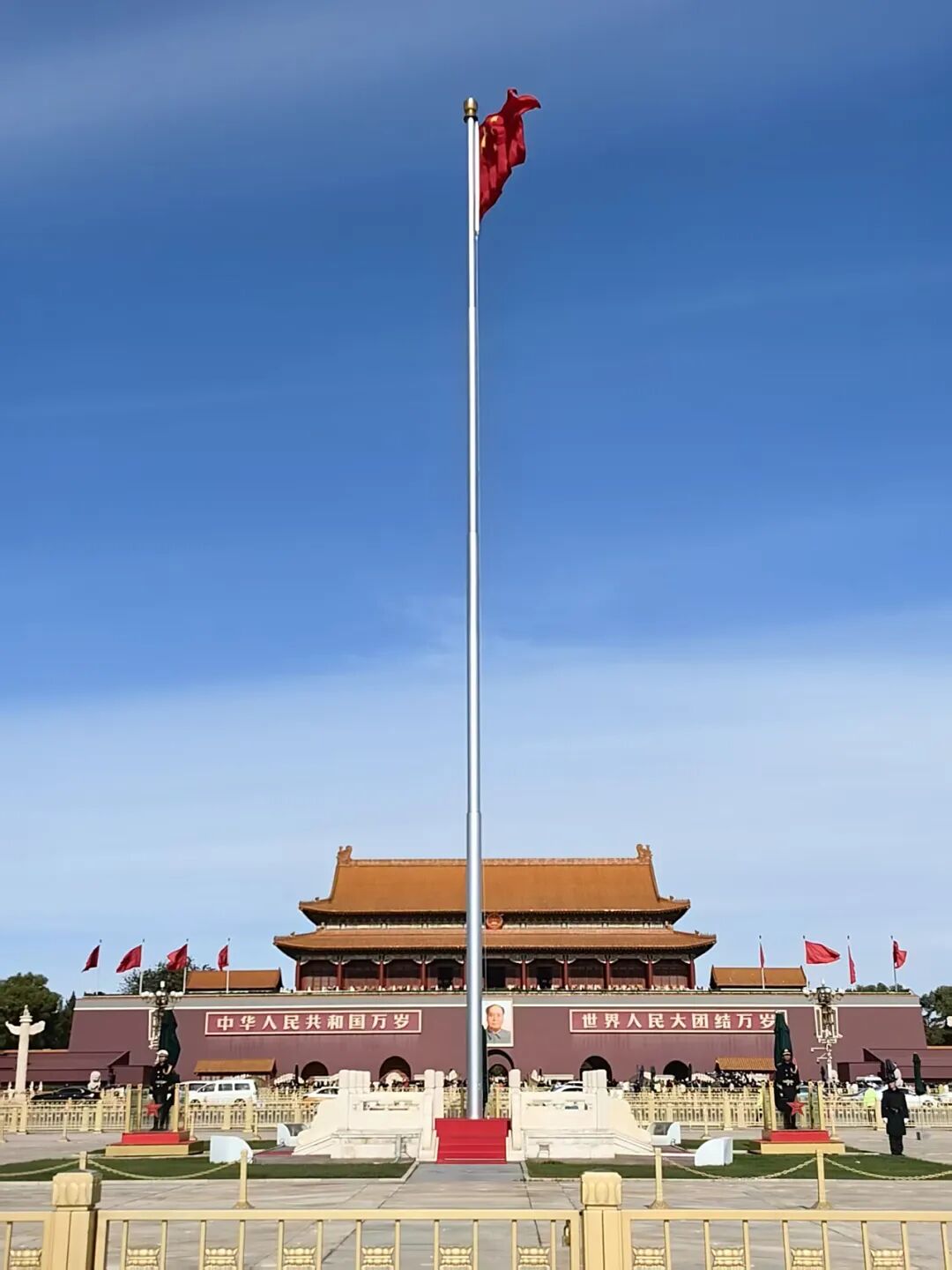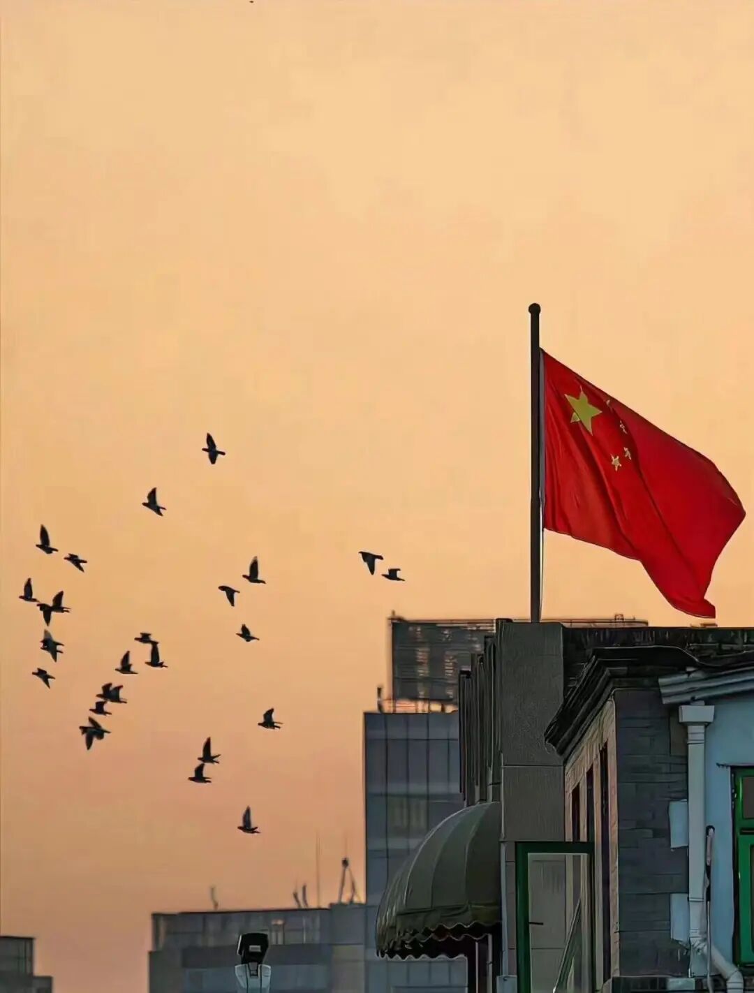 還有晨光中熠熠生輝的五星紅旗