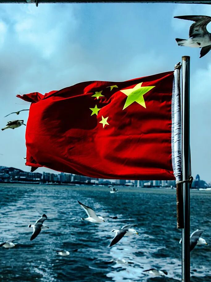 五星紅旗冉冉升起如希望燈塔